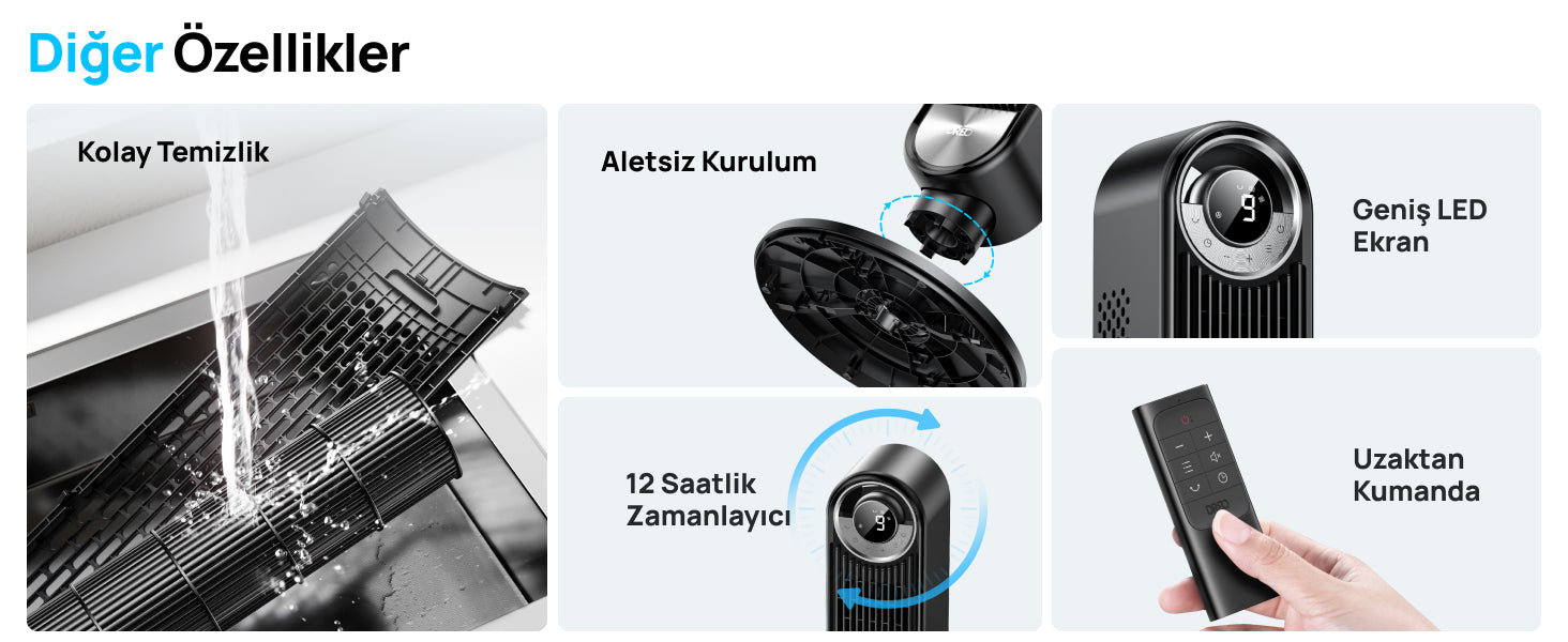 Süper Hızlı Rüzgar: Dakikada 1076 CFM hava akışı ve saniyede 8 metreye (26 ft/s) ulaşan rüzgar hızıyla geniş alanları anında serinletir.