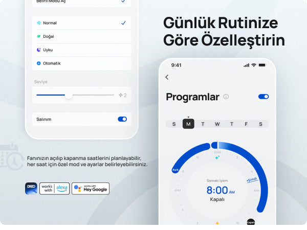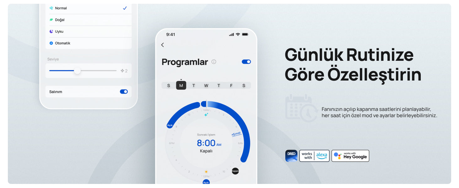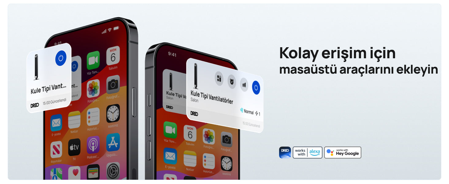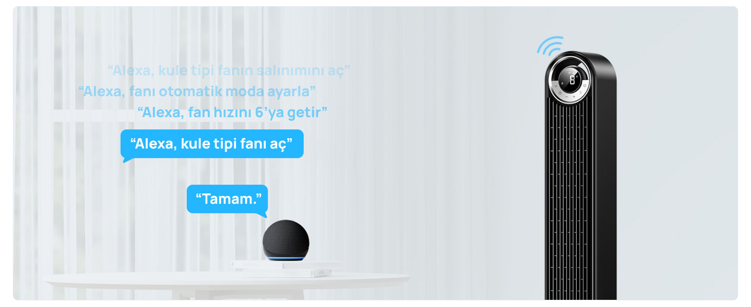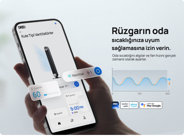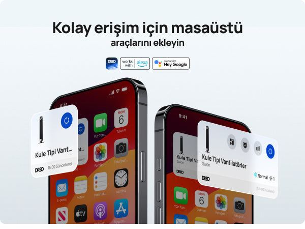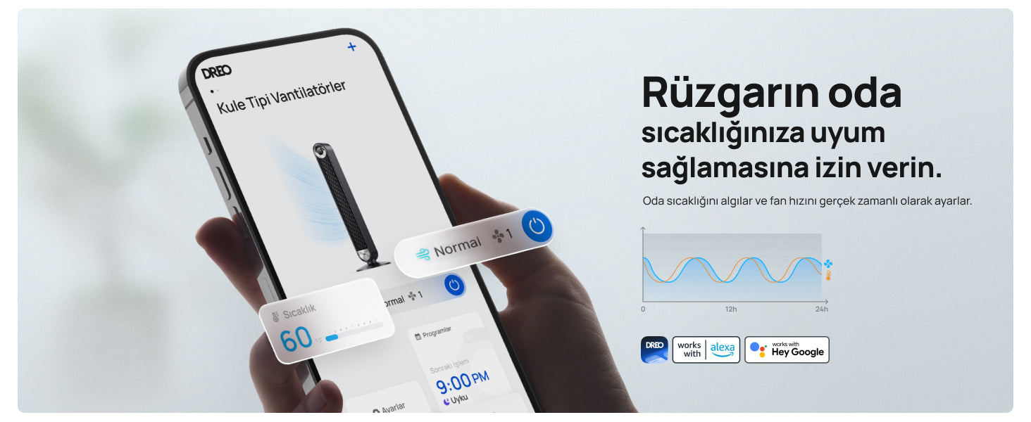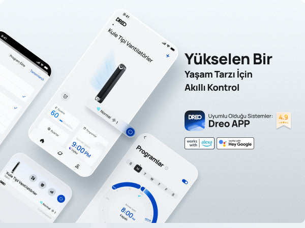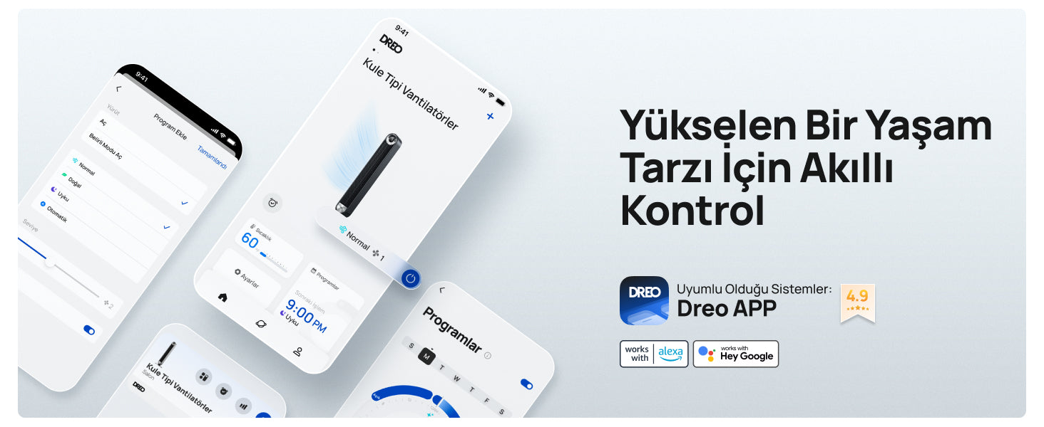 Akıllı Kontrol: Amazon Alexa, Google Assistant ve DREO mobil uygulamasıyla uyumlu.