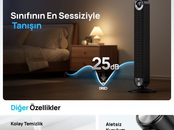 Ultra Sessiz Çalışma: Sadece 25 dB ses seviyesiyle çalışır, özellikle yatak odaları için idealdir.