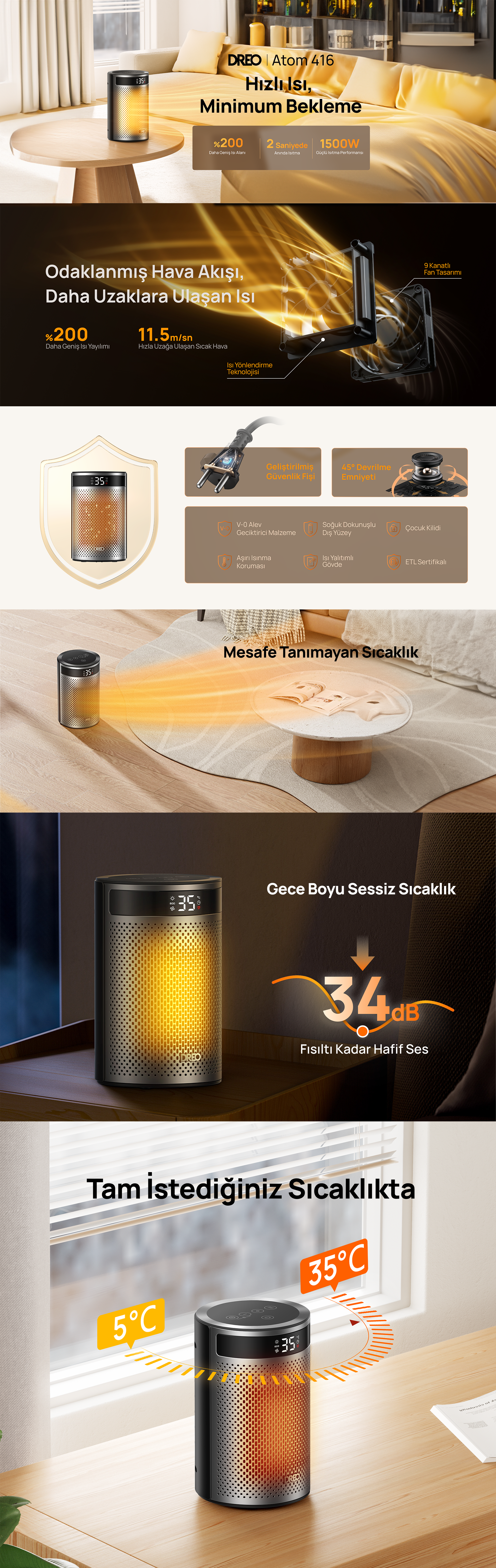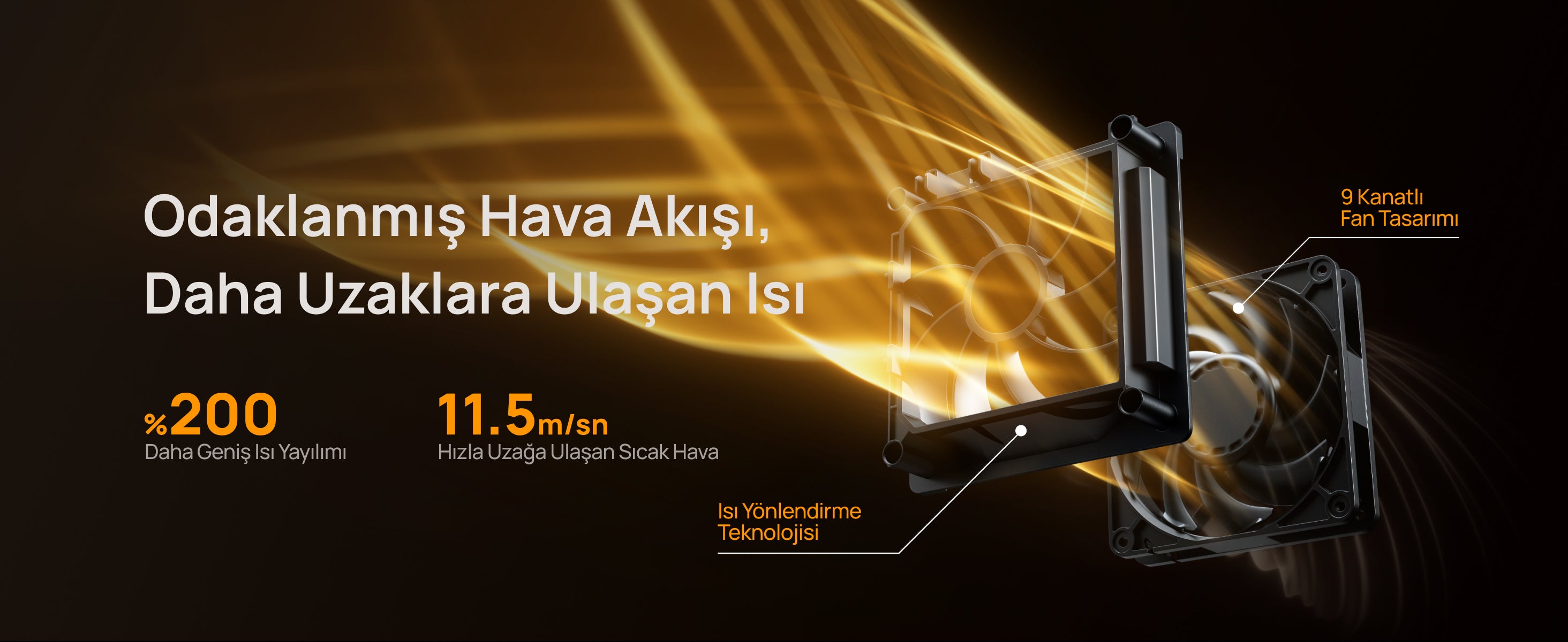 - 3 farklı mod: Güçlü Isıtma, ECO, Sadece Fan