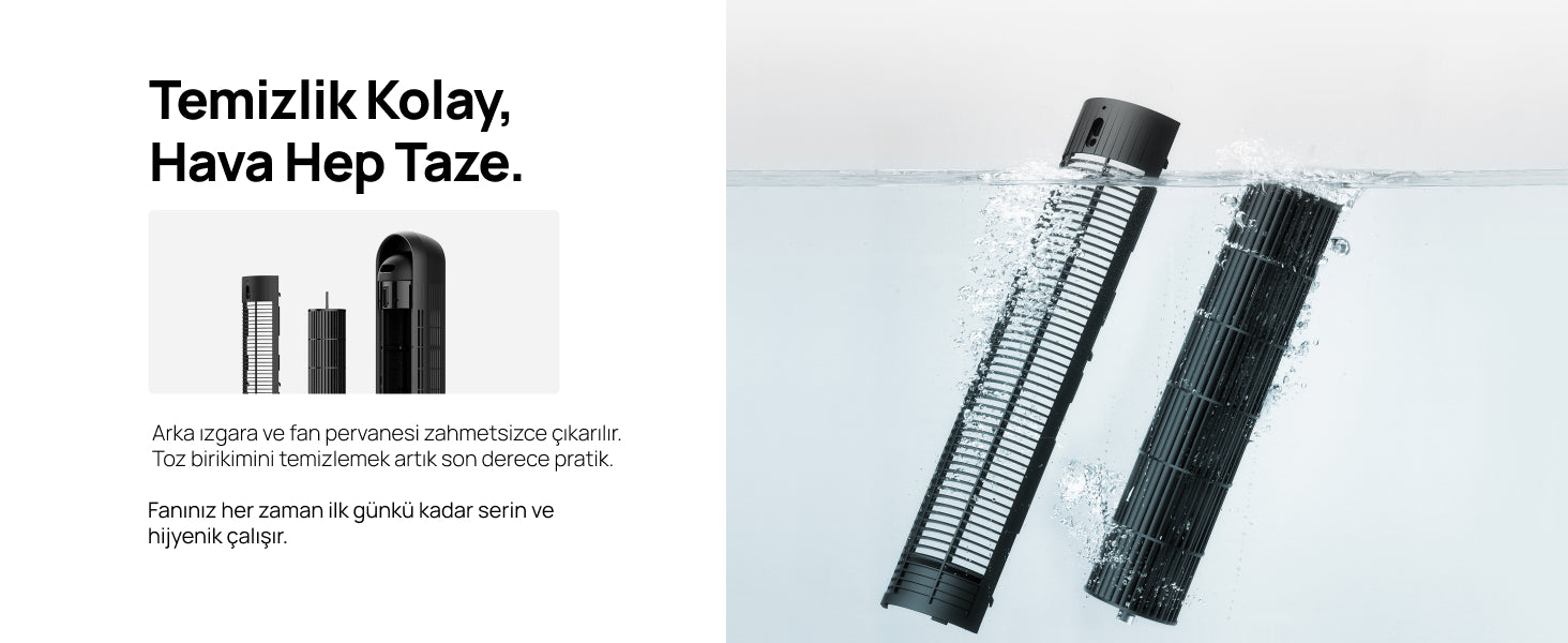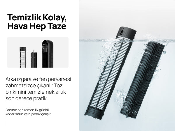 - Izgara ve fan pervanesi çıkarılabilir; toz temizliği son derece pratiktir.
