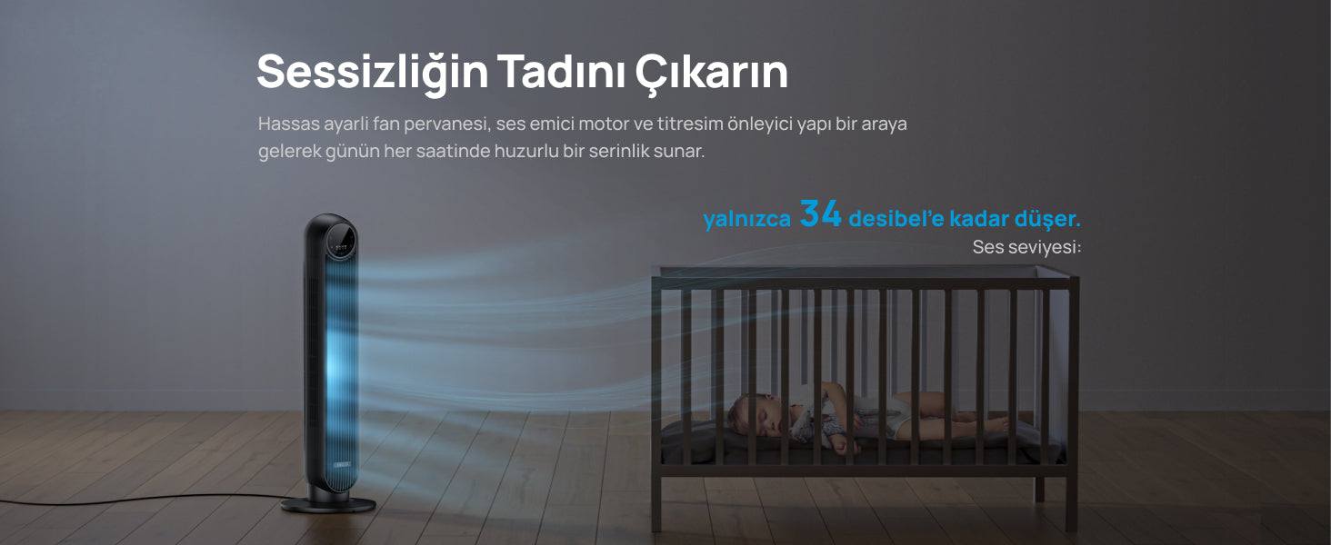 - Sadece 34 dB ses seviyesiyle sessiz çalışır.