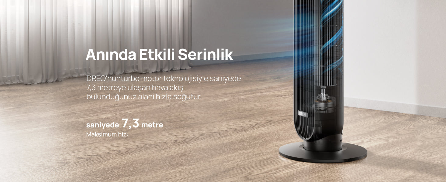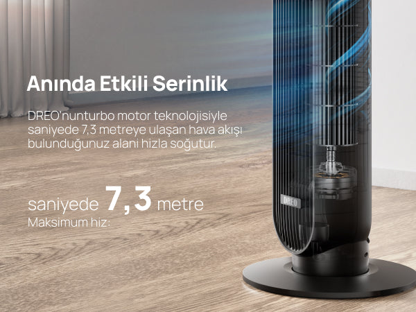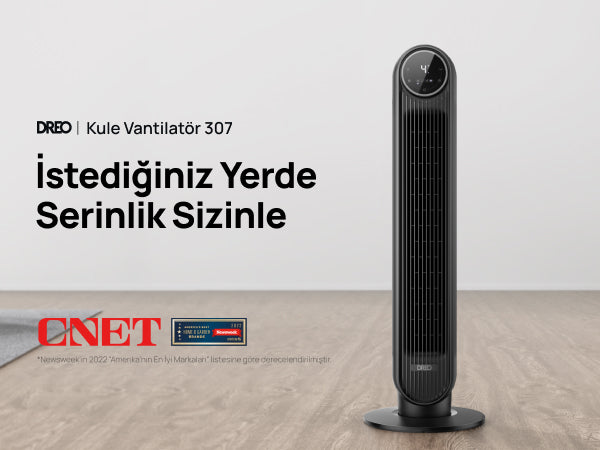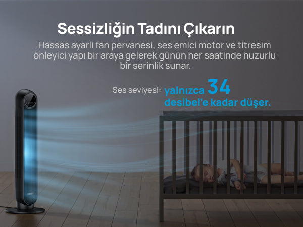 - 4 hız seviyesi, 8 saatlik açma-kapama zamanlayıcısı ve 90° salınım özelliğiyle esnek kullanım sunar.