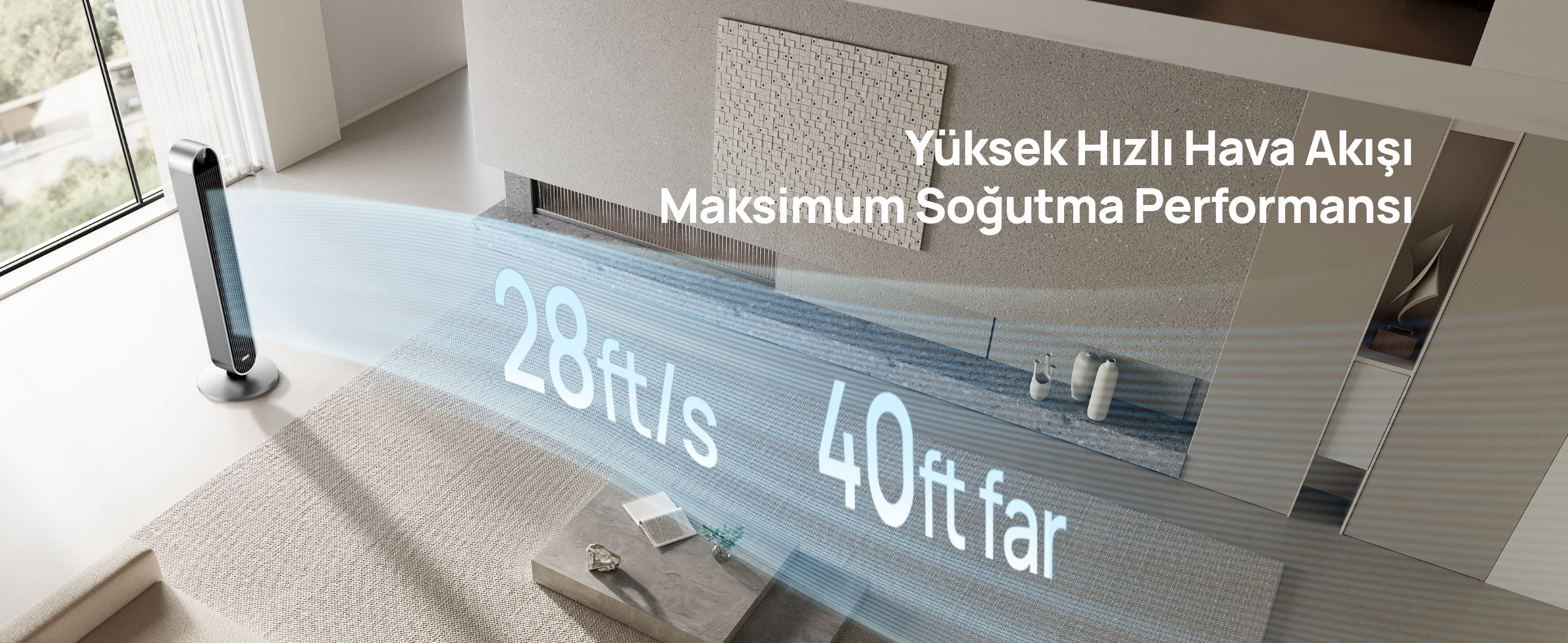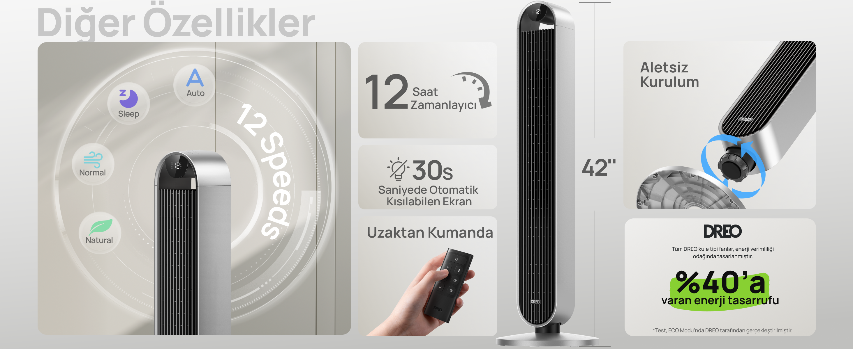 - 12 hız seviyesi, 4 mod ve ayarlanabilir salınım açısı (30° / 60° / 90° / 120°)