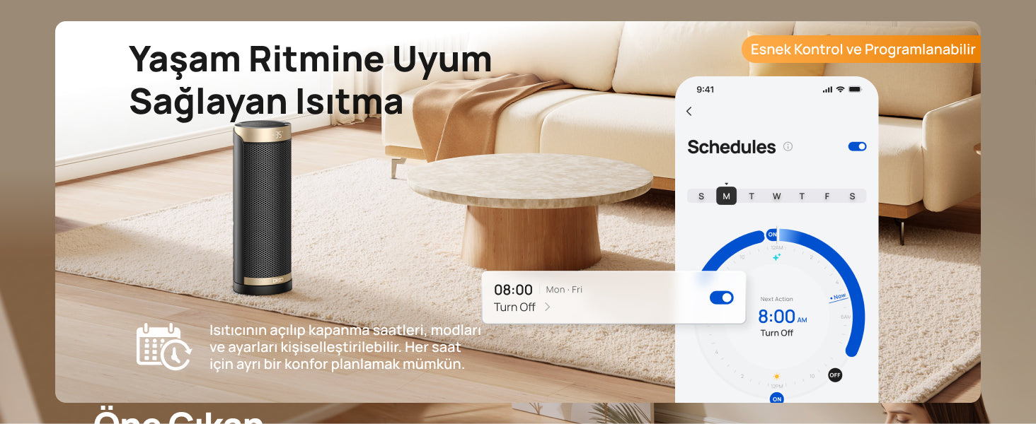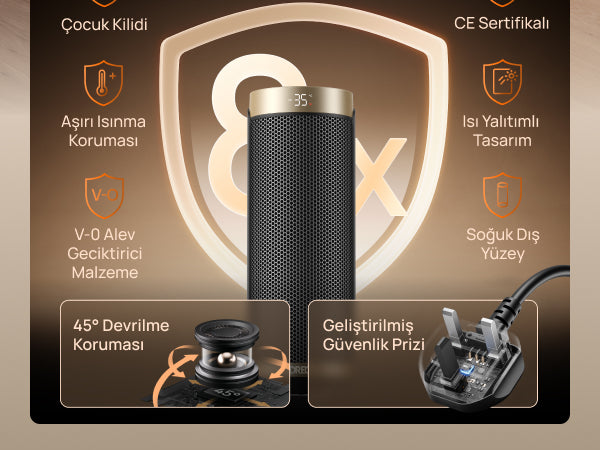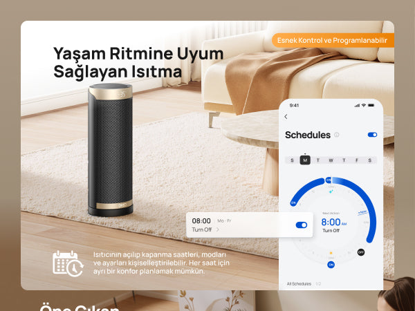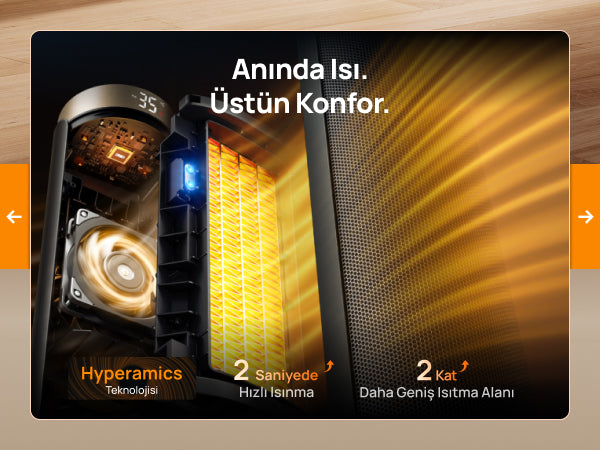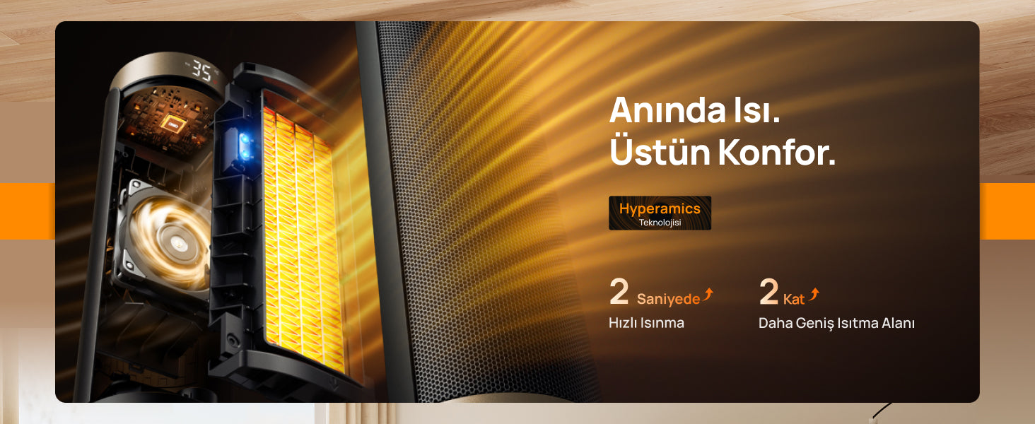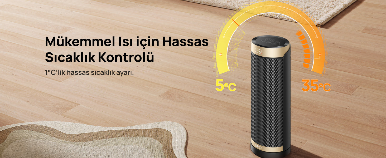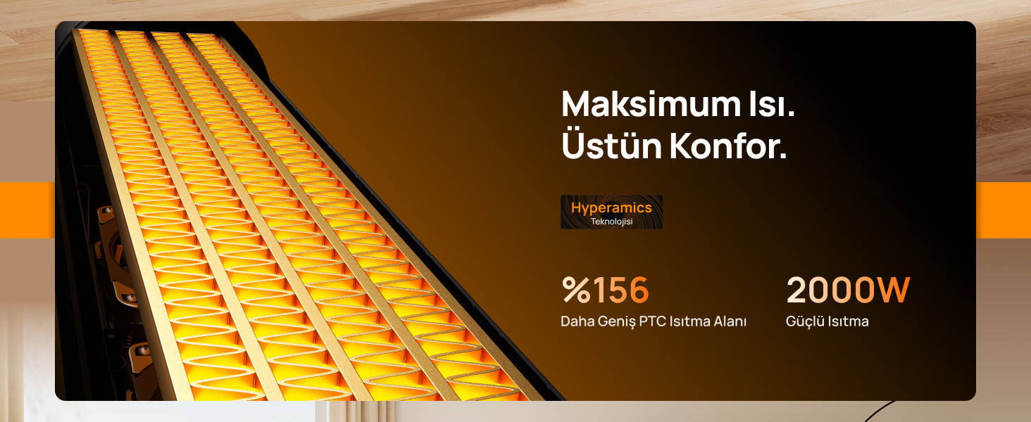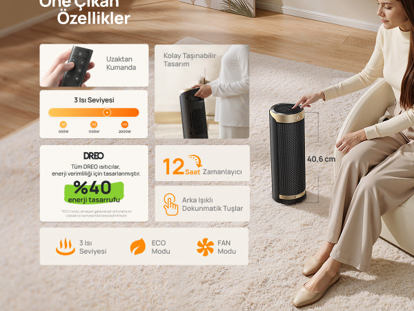 - 3 Mod: Güçlü Isıtma, ECO, Sadece Fan